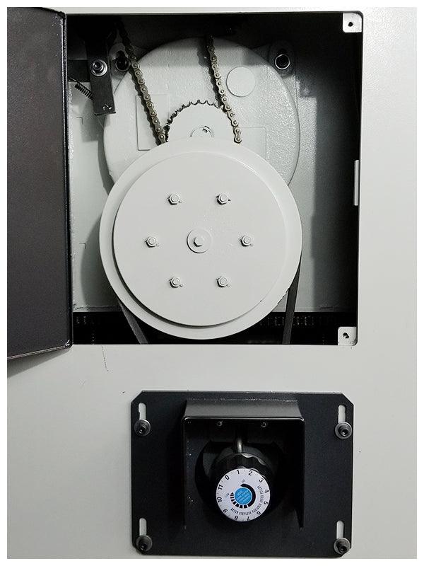 - Safety limit switch on the cover will not allow the operator to run the machine with the hood open.