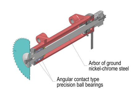 - Precision Built Saw Arbor constructed of nickel-chrome steel, large diameter, accurately ground and dynamically balanced.