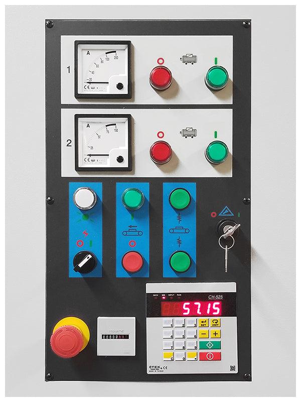 - Accurate digital thickness control with both Inch & Metric settings allows operator to key in the desired thickness and table will automatically move into position.