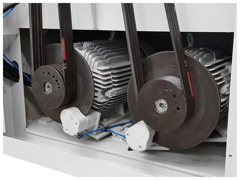 - Pneumatic belt tensioning with quick release outboard support to facilitate fast belt changes.