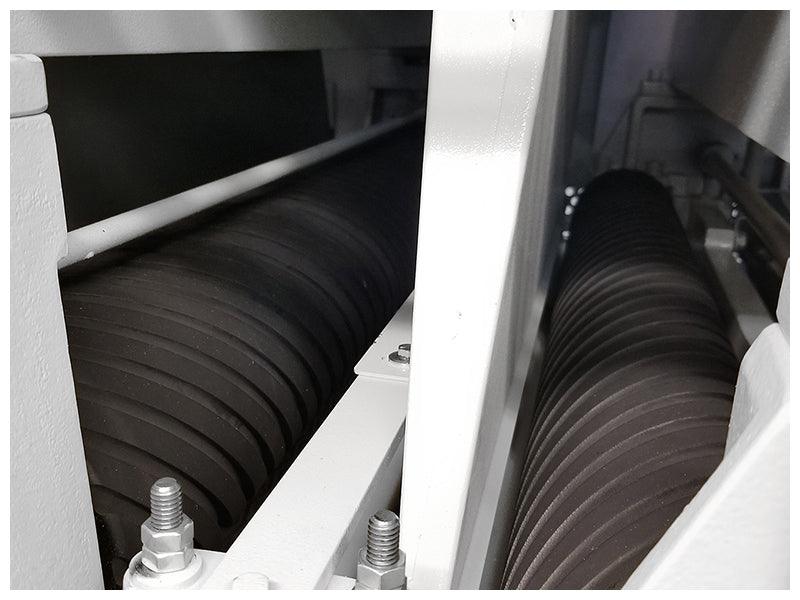 - Double infeed and outfeed pressure rolls for superior part hold down