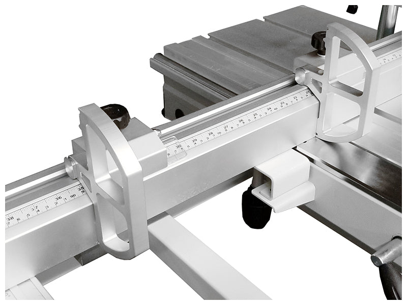 - Aluminum extruded crosscut fence with (2) flip stops with convenient angle adjustment for miter cuts
