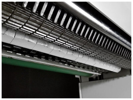 - Serrated sectional infeed roll conforms to material which is not yet flat