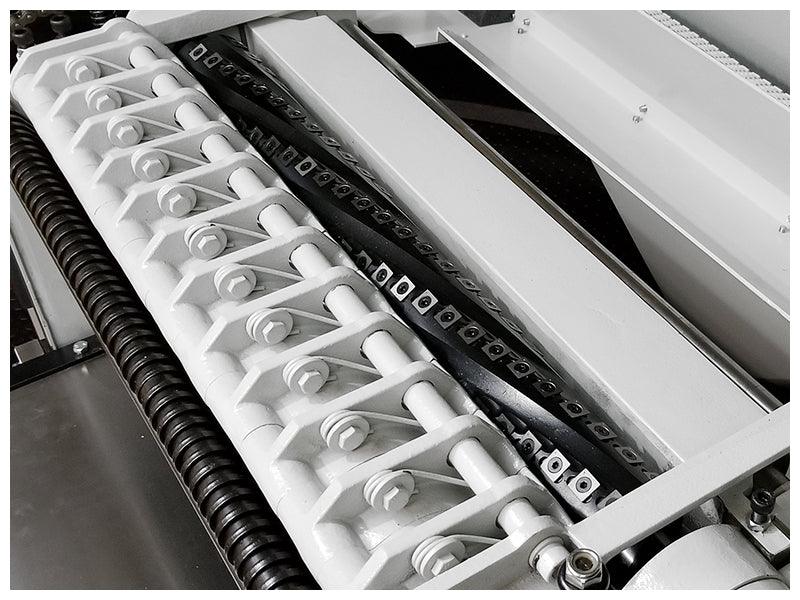 The Cantek P24HV 24” Planer has a cast iron table and head assembly with robust welded steel frame results in superior planing finish due to greatly reduced vibration. The spiral insert knife cutterhead runs extremely quiet and the solid carbide inserts provide a smooth finish and have a long life. When one edge gets dull simply rotate the knife 90 degrees for a new cutting edge. Knives can be rotated four times before needing to be replaced.