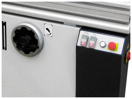 The Cantek P30 5′ Sliding Table Saw is the ideal solution for customers looking for the precision and convenience of a sliding table saw but have limited floor space and smaller cutting requirements. The P30 has a precision sliding table which runs on ball bearings and hardened steel guide strips. It is equipped with individual motors for the main saw blade (5 HP) and scoring blade (¾ HP). The blade height and tilt is manually adjusted by means of individual handwheels. The angle of the blade is displayed by a linear scale for added operator convenience. The rip fence runs on a round hardened rail and is manually adjusted up to 51”. Equipped with a crosscut miter fence and (2) flip stops.