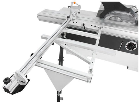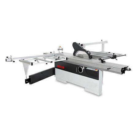 The Cantek P305 10’ Sliding Table Saw is built for the budget conscious user that still wants precision and accuracy. The P305 has a precision sliding table which runs on ball bearings and hardened steel guide strips. It is equipped with individual motors for the main saw blade (5 HP) and scoring blade (1 HP). The blade height and tilt is manually adjusted by means of individual handwheels. The angle of the blade is displayed by a linear scale for added operator convenience. The rip fence runs on a round hardened rail and is manually adjusted up to 51”. Equipped with a extendable crosscut miter fence and flip stops.