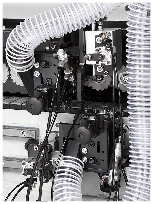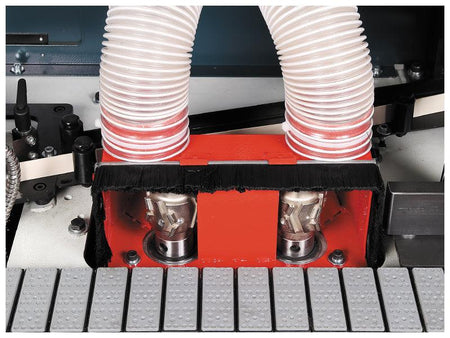 - Heated infeed fence for pre-heating the panel for optimum glue penetration.