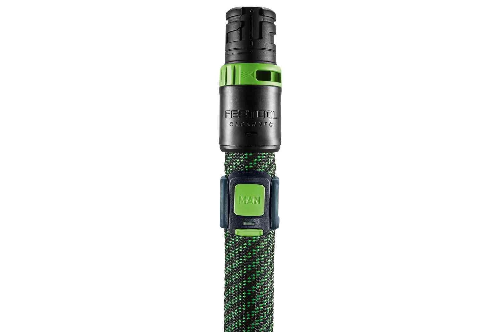 The combination of Bluetooth® module on the CLEANTEC mobile dust extractor and remote control on the extractor hose saves you a trip to the extractor: Simply start dust extraction from the hose using the remote control. Ideal for small, occasional cleaning tasks – simply switch to cleaning mode, even when the mobile dust extractor is in AUTO mode. The Bluetooth® module on the mobile dust extractor communicates with the Festool Bluetooth® battery packs in addition to the new remote control. These battery packs ensure that even a cordless tool starts the mobile dust extractor automatically when switched on. This now enables you to benefit from Festool's entire dust-free system when working with Festool cordless products too.