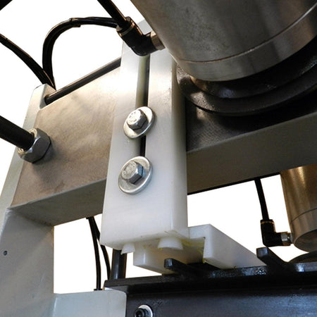 - Floating dovetailing unit has ball bearings which run on chrome steel guiderails for effortless operation