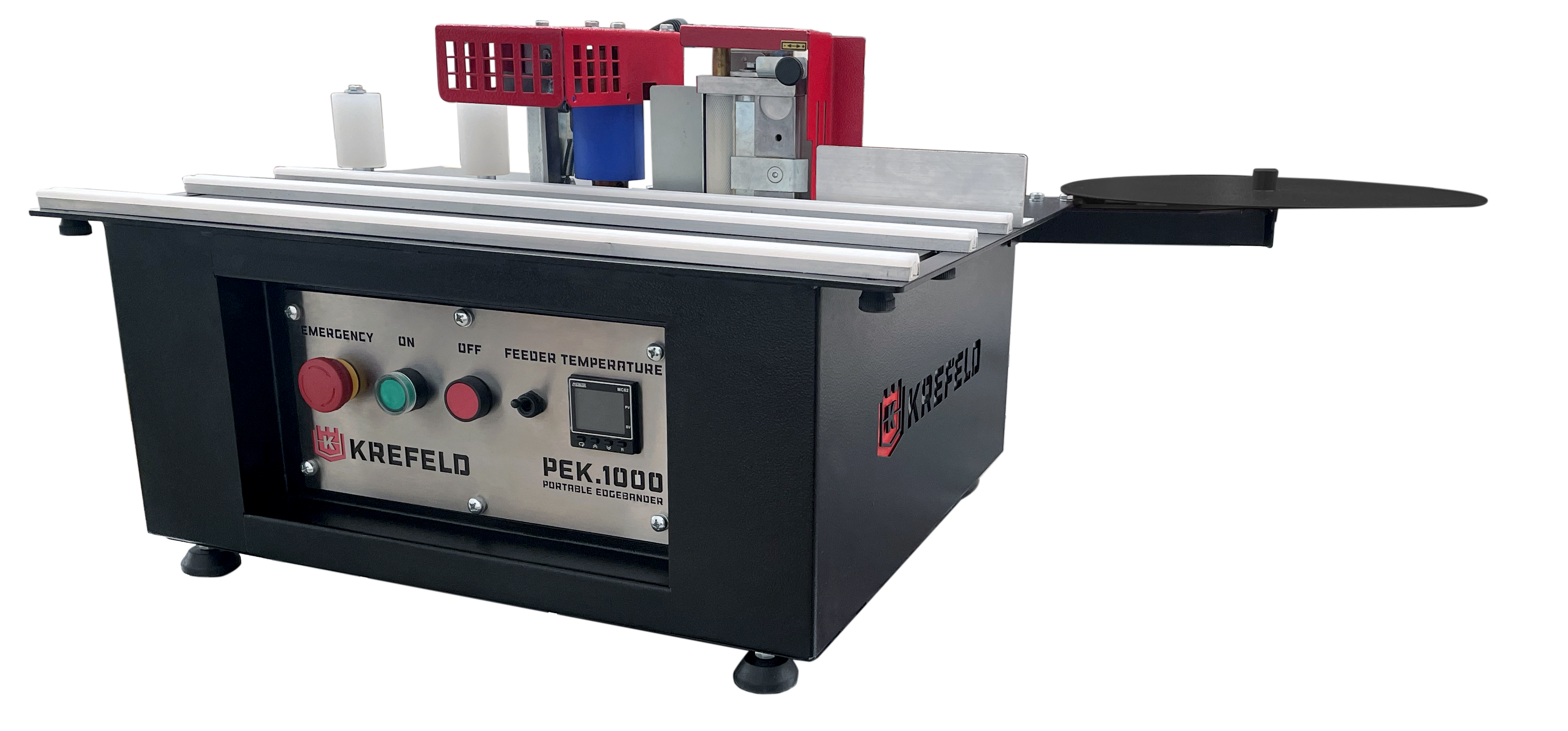The PEK.1000 Krefeld Portable Edgebander works with the most commonly used edge banding materials