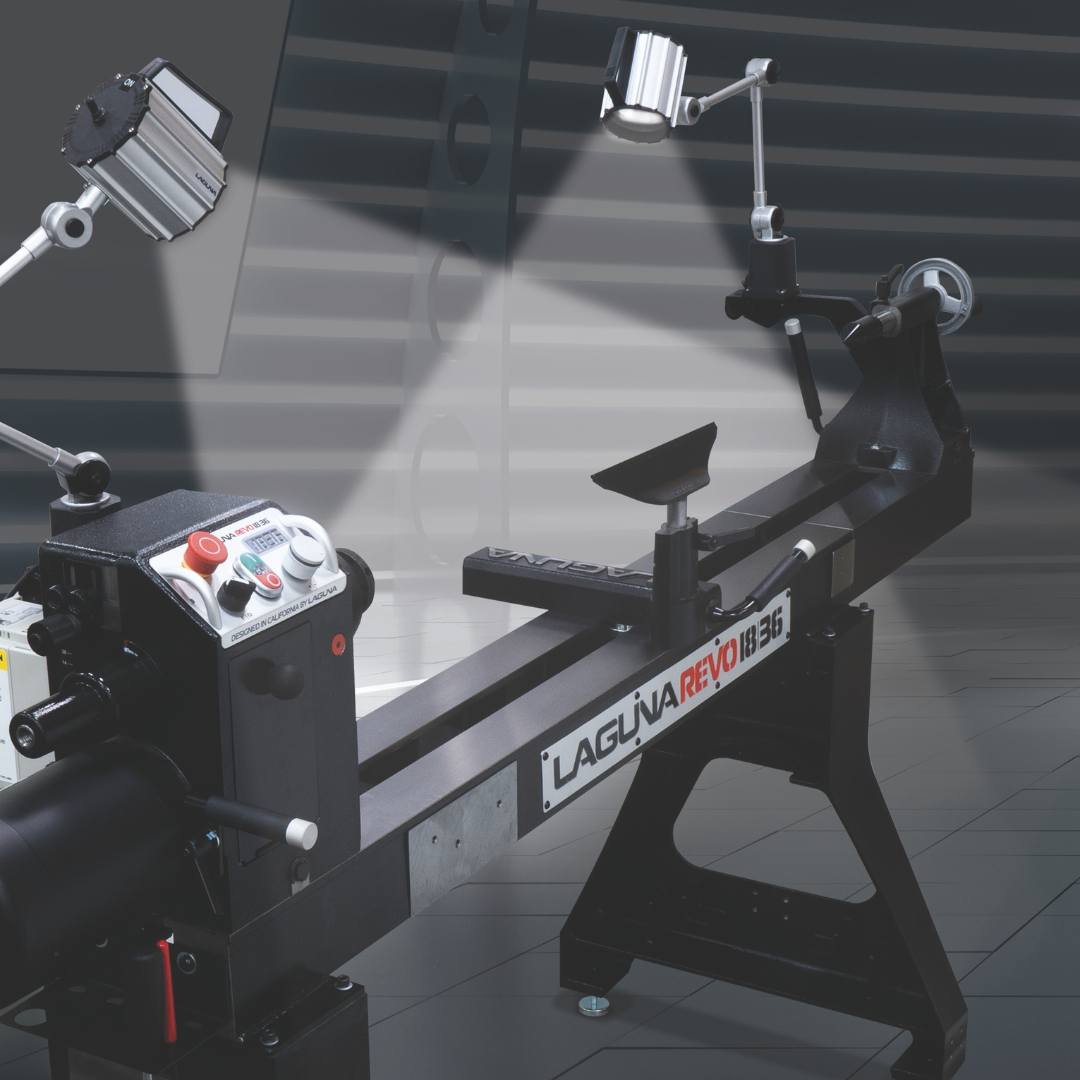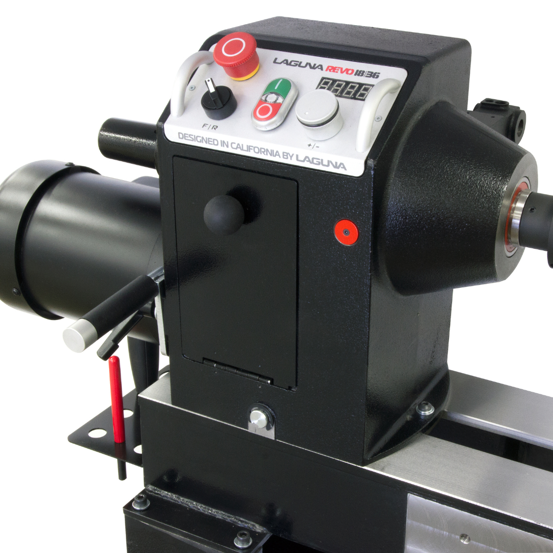 The Laguna Revo 18|36 Lathe is more than just a machine—it’s a statement of craftsmanship. With its sleek ergonomic angled control panel in anodized aluminum, glowing blue DRO display, and precision knurled control knob with rubber grip, you’ll know instantly this is no ordinary lathe.