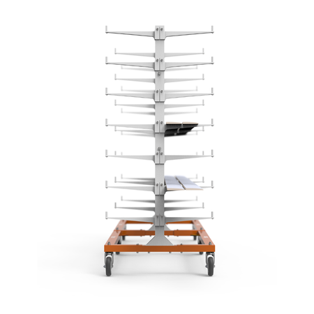 The Trim Cart is ideal for cabinet shops, woodworking shops, millwork operations, and construction teams who need to keep long, narrow materials organized and mobile.