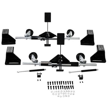 Complete Deluxe Wheel System with Dual gas struts. Lathe sits on all 4 soft pads when in working mode. 4 Swiveling Casters provides easy maneuverability. Requires no drilling. Easy Install.
