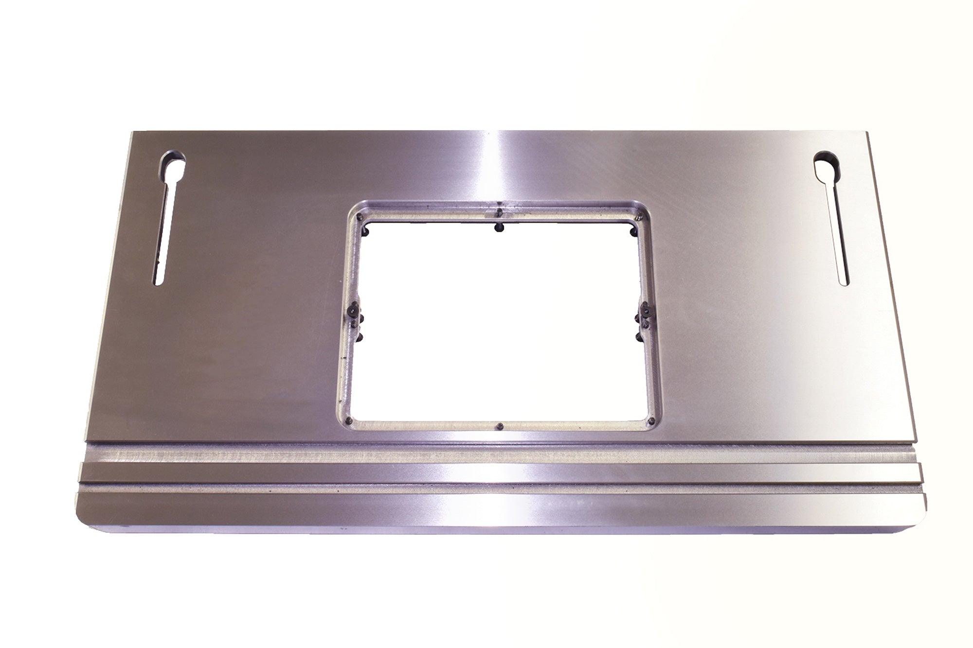- Router plate opening: 11 3/4″ x 9 1/4″