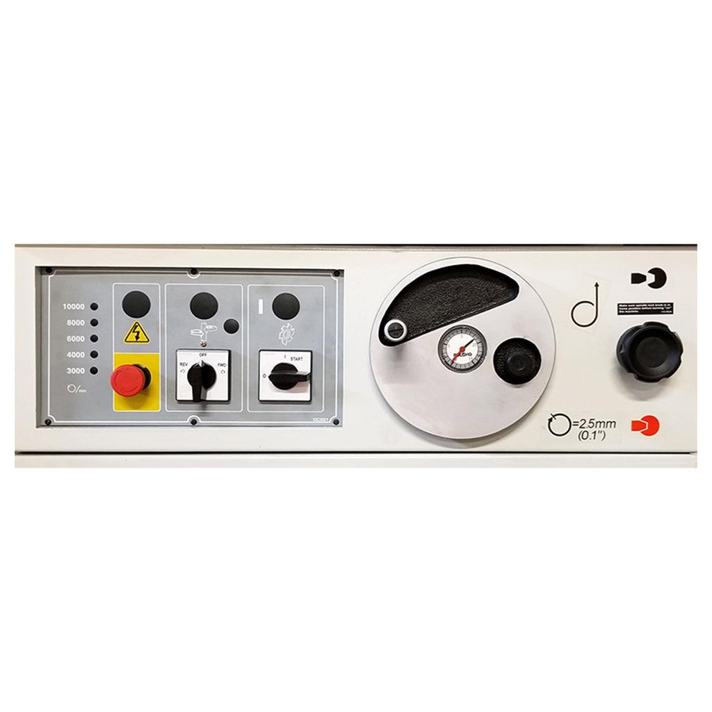 - Micro spindle height adjustment with dial indicator for precise height adjustment