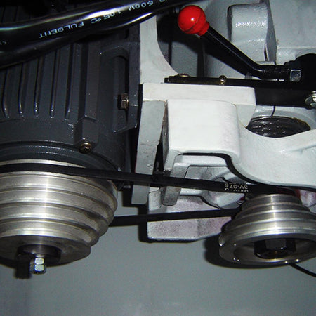 - V-belt drive with (5) spindle speeds is easily accessed from the front of the machine (3/4/6/8/1000 RPM)