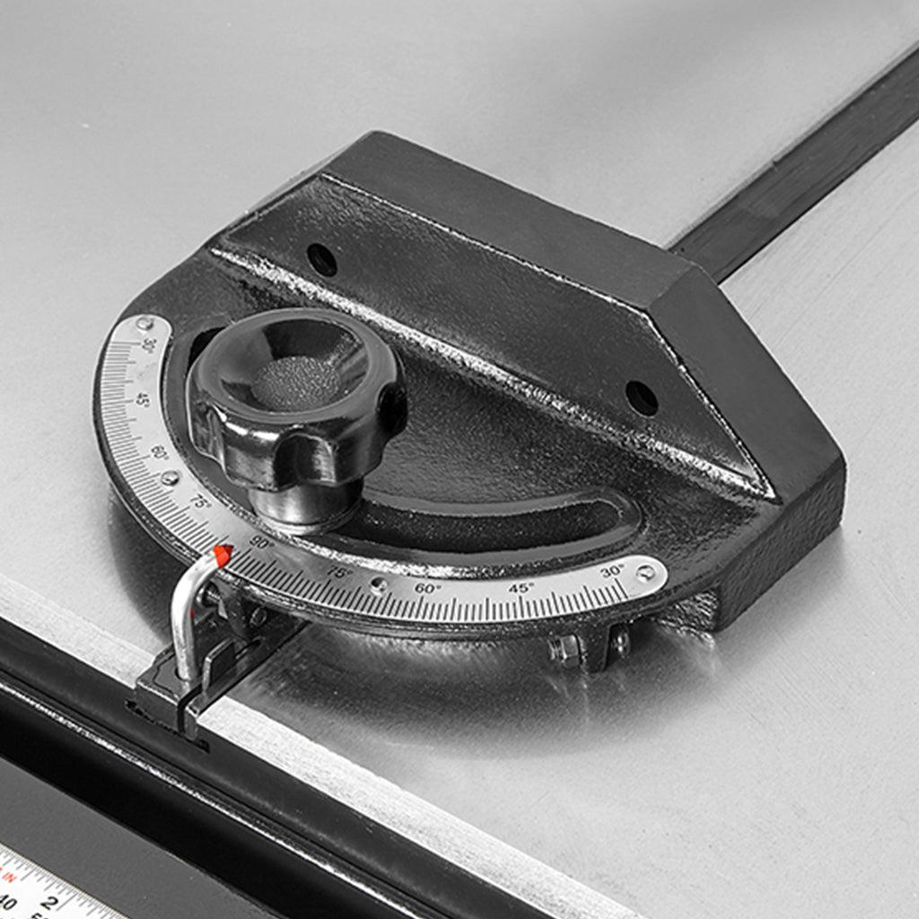 - 50” capacity T-square rip fence assembly locks on front rail for a precise parallel reference to the saw blade